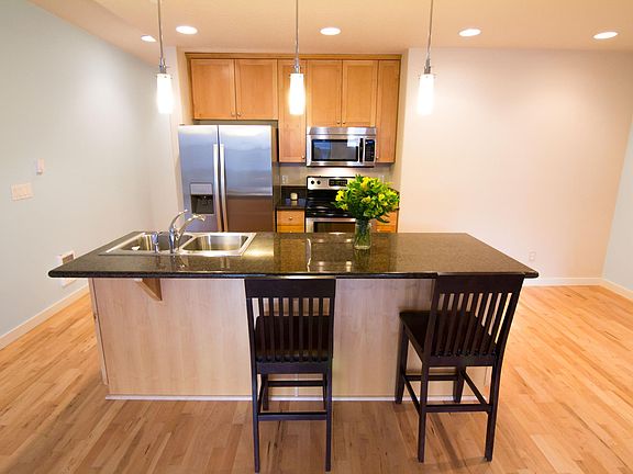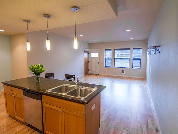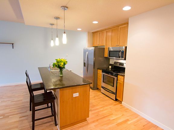 Bright and spacious 1 bed 1 bath, set a block off the street on a private drive in a small, well maintained condo community. Built in 2009 with slab granite and new stainless steel kitchen appliances, maple wood floors, modern lighting and 9ft ceilings. Double wall construction keeps it quiet and energy efficient. This is a single level unit on the ground floor of a two story building. Great location for walking/biking/public transit. Easily walk to coffee/bars/restaurants/farmers market nearby. Near Fernhill Park, New Seasons Grocery, Kennedy School, NE 42nd Ave "Restaurant Row" and Alberta Arts District, Portland Community Garden plots across the street, Cully and Concordia Neighborhoods. Just a 15 minute drive to downtown and less than 10 minutes to the airport. Stainless steel refrigerator, microwave, dishwasher, oven Stackable washer and dryer One off street parking spot included Private fenced back patio area Water/Sewer/Garbage $50/mo Will consider small pets for an extra $25/month. (Maximum of two. Dog and/or cat at least one year old, spayed/neutered, no more than 30 pounds) No smoking - $40 application fee per adult for credit/background check - $1325 refundable security deposit - $300 refundable cleaning fee