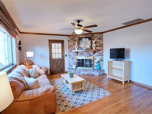 Beautiful home with wonderful touches throughout! The floor plan is perfect for entertaining, the kitchen, dining, and living room are all open. The spacious kitchen has newer stainless-steel appliances. The beautiful wood floors throughout the dining, living and hallways have inlay designs. The updated vinyl windows allow for lots of natural light. The living room has a fireplace and access to the large fenced backyard. The master bedroom has a walk-in closet and on suite bathroom with enclosed shower. The other two bedrooms share the hall bath with a shower/tub. The garage has lots of extra storage area inside, with enough room to park two vehicles. Sellers are currently in the process of replacing the roof. This wonderful home is MOVE IN READY!!!