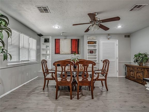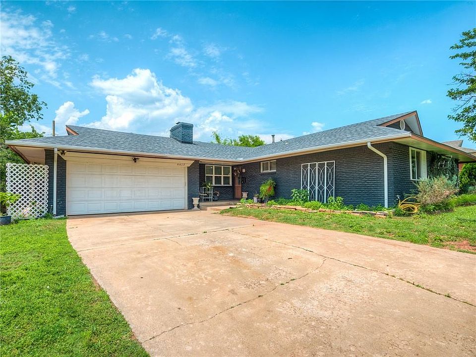 Fantastic home situated on just under a half acre lot with fully fenced backyard provides plenty of outdoor space for gardening, outdoor gatherings, or enjoying some privacy. Open concept living with a show stopping kitchen area featuring a 12 foot kitchen island with new granite which serves as a multi-functional centerpiece. The Butler Pantry off the kitchen offers extra storage for serving platters and trays. Charming and inviting dining room with fireplace adds warmth, ambiance, and an element of coziness. With a wall of windows offering views of the backyard, the living area is an obvious choice to enjoy the evening sunsets. The primary bedroom has 2 closets and a freshly remodeled bathroom with walk-in tile shower, new vanity with granite counters, paint and flooring. The flex room is currently being used as a 4th bedroom with built-in loft beds perfect for guests and big enough to use however you need. The 3rd bedroom has built-in shelving ready for an office or craft room. The home offers fresh paint, newer flooring, windows, updated hall bathroom and stainless steel appliances. Minutes from NW Expressway and all major shopping needs and within 10 miles from downtown with an easy commute.