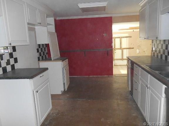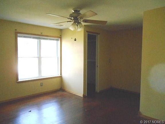 Corner lot, house has had some updates, covered some windows and updated inside. Three bedrooms, one bath, newer cabinets, utility room, and living room. Detached two car garage, close to grade school. (TO BE SOLD IN 'AS IS' CONDITION!