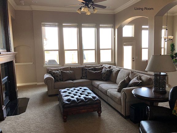 Three bed with a Study, bonus room with separate entrance, kitchen dining plus formal dining. Storm shelter in garage. Large living room with 12ft ceilings. Granite and quartz counter tops. Community pool, clubhouse, playground, 9 miles of walking trails. Don't miss the huge, approx. 17000sf private back yard overlooking future Ruby Grant Park, adventure playground, dog park, and skate park. Pre-approval for a large backyard shed. Great schools. Move-in Ready. Hard wired alarm system, Insulated garage, new roof 2017, New outside Painting 2017, New landscaping 2017, New fence & gating 2017, Refrigerator included.