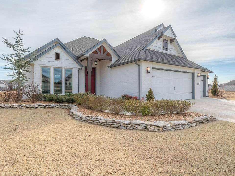This is our newest model home in Huntington Park, recently featured in the 2019 Parade of Homes! This is our Buchanan plan, and it is a one story with 3 bedrooms, an office or flex room, 2 and 1/2 baths, and an oversized 3 car garage. This home has 10 foot ceilings in the entry, study, formal dining, kitchen, master bedroom, bathroom and closet, and 12 foot ceilings in living room with hand-scraped custom wood beams. Includes wood-look tile in entry, kitchen, living, dining room, bath and utility rooms, shiplap in dining room, and blinds on all windows. Features of this home include custom cabinets, subway tile backsplash in the kitchen, and 3 cm granite countertops with a 6 cm edge. This home is full brick, with 2 '6 main exterior walls with blown in bib insulation, 30-year shingles and includes insulated garage doors, ceiling and walls, garage door opener, fans in all bedrooms and living room, oil-rubbed bronze hardware, gas log fireplace with switch, stainless appliance package, upgraded landscaping package, full sprinkler system, 50 gallon hot water tank, 3 exterior faucets and an alarm system. The outdoor patio features a vaulted ceiling with an outdoor fireplace and extended diamond-cut concrete.