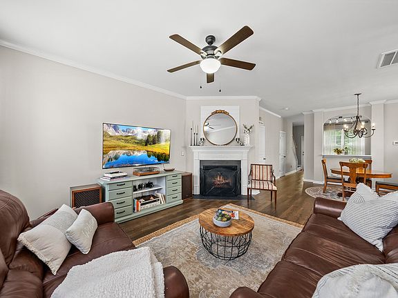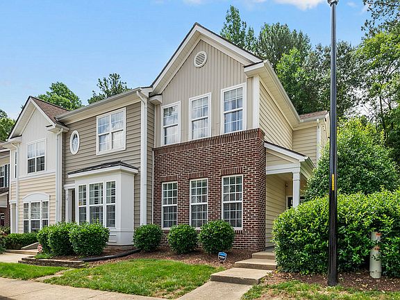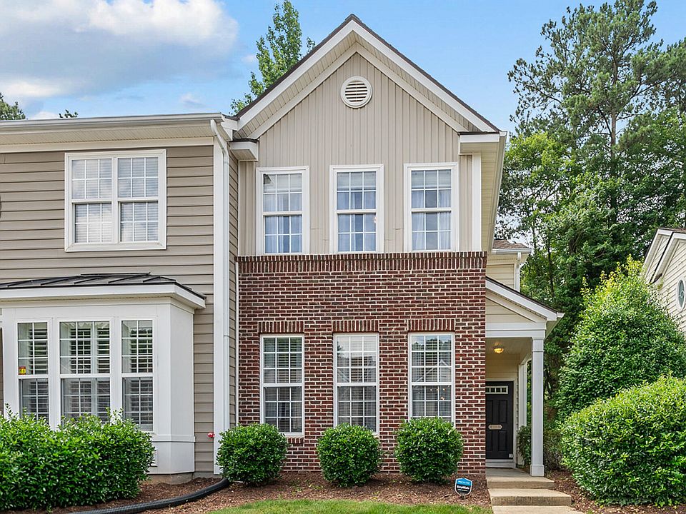 WANT A BRIGHT & STYLISH END-UNIT TOWNHOME IN A PRIME RALEIGH LOCATION? Welcome to this beautifully updated 2-bedroom, 2.5-bath end-unit townhome that perfectly blends style, comfort, and convenience. Located in a sought-after Raleigh community, this move-in ready home offers exceptional natural light throughout thanks to its desirable end-unit positioning and extra windows. Step inside to find modern laminate flooring extending across both levels, fresh interior paint, and a thoughtfully renovated kitchen featuring stunning quartz countertops, custom tile backsplash, and a custom-built island with bar seating—ideal for entertaining or everyday living. The inviting family room boasts cozy gas logs, creating a perfect space for relaxing evenings. Upstairs, retreat to the vaulted primary suite with a private en-suite bath and newer vanity. A second spacious bedroom, upstairs laundry, and updated powder room on the main level with elegant wainscoting and wallpaper complete the interior. Enjoy the rare benefit of additional side yard space and a tranquil backyard that backs up to mature trees and lush green landscapes—offering a peaceful, private setting. This pool community features a large clubhouse, ideal for social gatherings and recreation. Don't miss the opportunity to own this upgraded gem in one of Raleigh's most desirable communities.