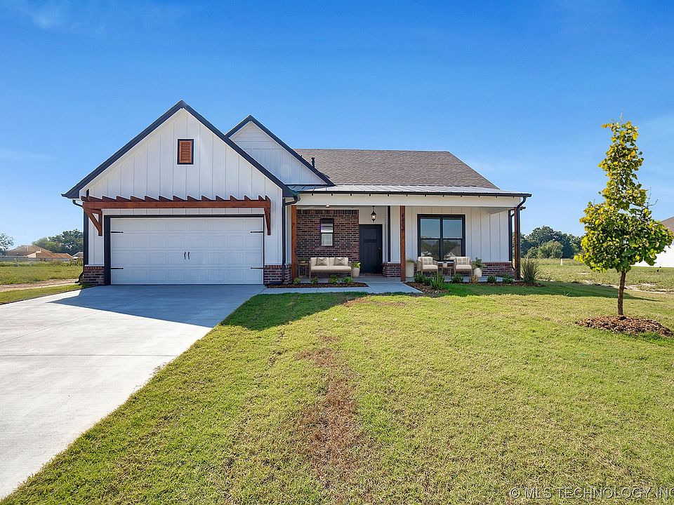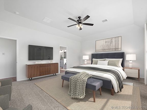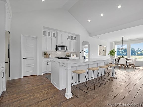 Sophistication and charm come together effortlessly in our Augusta floor plan. As you walk through the front door, you're greeted by beautiful cathedral-esque vaulted ceilings with gorgeous beams and a stunning quartz kitchen island. Enjoy cooking in your new kitchen with a spacious walk-in pantry and plenty of storage throughout the house that includes a built-in bar area off the kitchen. This layout features large picture windows throughout, allowing for natural light to pour in and fill the space. The spacious primary suite is found in the far corner of the home and includes amenities such as an extra-large walk-in closet, an ensuite bath with dual sinks, a soaking tub, and a standing shower. Every option in this house was hand selected by our designer with the latest trends.