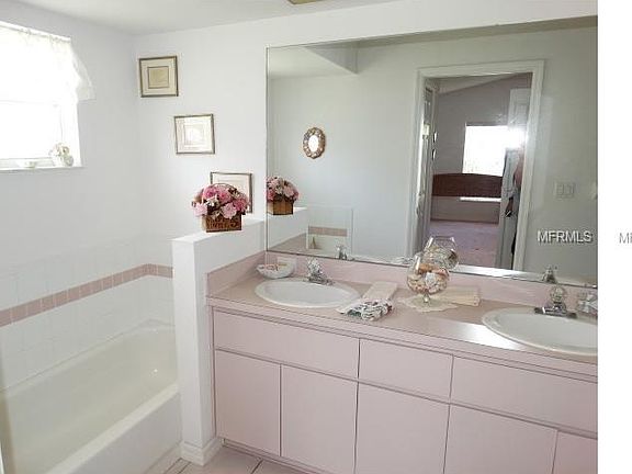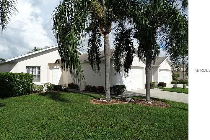 This home has been lived in by the original owners and well maintained. Clean and move in ready. It is a solid block home with a split plan. Dual sinks in master bath as well as a separate tub and shower. Master bedroom has his and her walk in closets. Second bedroom has access to bath and also has a walk in closet. Kitchen looks out into living and dining rooms and view of lake. Gorgeous vaulted ceilings in living room and master bedroom. Inside laundry room with newer appliances just off the garage. Sit on your enclosed and enjoy a view of the lake and mature palm trees. Visit the updated clubhouse with new exercise equipment and choice of two heated pools. You may never want to leave this quiet cul de sac but if you do your home will be maintained and ready for your return. Everything is close by from restaurants to shopping to the many golf courses including the premier semi-private Fox Hollow just up the road in Trinity. Under 30 min to nearby Tampa airport and 90min to attractions such as Disney World Orlando. Owners moved here for the weather and low taxes and stayed for the neighbors.