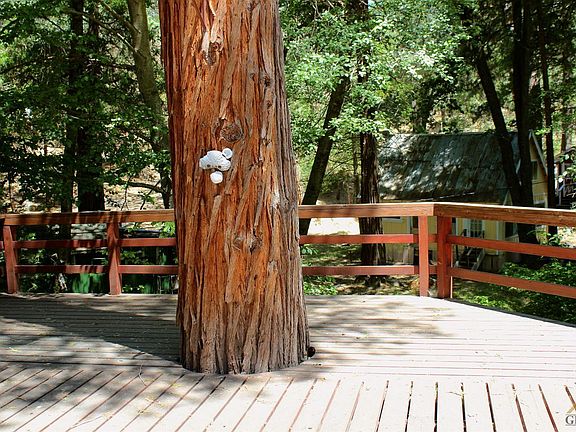 WOW! This wonderful cabin is nestled between two creeks in the tall pines and has been remodeled with top of the line details. Great location with separate ATV building/shop. Pellet stove area surrounded with stacked stone. Two bedrooms and loft for the little ones. Large wrap around deck over looking the year-round creek for entertaining and those special bar-b-ques in the cool mountain air. The community sits on 6.95 acres and you will own a share of that property. Wonderful courtyard area with brick accent.