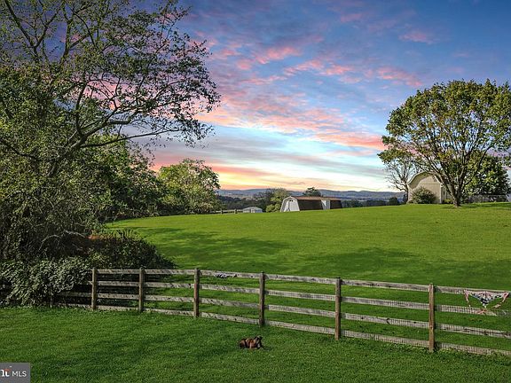 This charming 4 bedroom, 3 bathroom brick rancher tucked away on quiet Araby Church Road boasts incredible mountain view sunsets! Enjoy nearly an acre of land with a fenced backyard, and beyond the gate a small wooded stream flowing from the Monocacy. The patio outside the basement door is great for entertaining. Cozy up this fall with a fire in the gorgeous all-brick fireplace that has a firewood nook for convenient storage, and an ingenious easy fill pass-through from your woodpile in the garage. The basement is fully finished; complete with kitchenette and living area, wood stove, and a large bedroom and full bathroom. A separate space under the garage is perfect for storage, a home gym, or a workbench. 15 minutes to Historic Downtown Frederick, 8 minutes from Urbana, and just a 3 minute walk from Monocacy National Battlefield, the location could not be better.