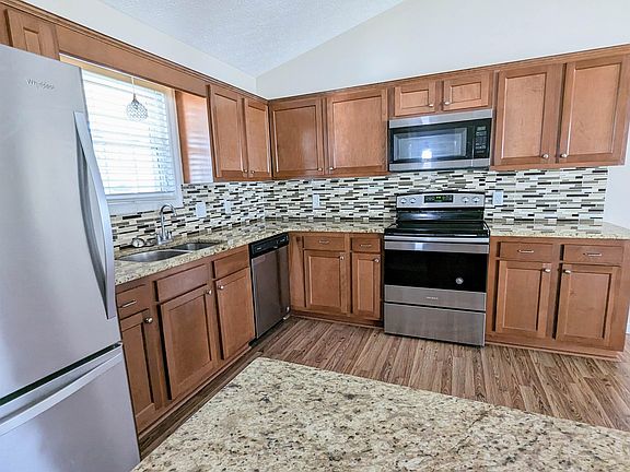 - Features: Breakfast Bar, Stainless Steel Appliances, Solid Surface Counters