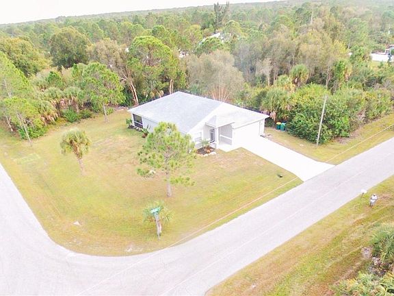 NO FLOOD INSURANCE REQUIRED!! this HIGH AND DRY, 1766 sq. ft., 3 bedroom, 2 bath, 2 car garage home built in 2007 on almost 1/3 acre corner lot with room to design your OWN pool. Located in Gulf Cove near the Myakka River state forest and blocks to the community boat ramp and park. This home has vaulted ceilings and a semi open floor plan with the Large kitchen right next to the great room and a bonus space or formal Dining Room upon entry. Tiled throughout the home except for the carpet in the bedrooms. Master bedroom has a nice size walk in closet and master bathroom with double sinks. Guest bathroom has a newer sink, and tub with shower. Home features an indoor Laundry Room with a new Washer, as well as a sink, dryer is also included and a new hot water heater. The PEACEFUL screened in Lanai allows you to BBQ and relax while watching the squirrels play, and listening to the birds sing. Seller has recently installed security cameras, covering the entire exterior. There is also a new reverse osmosis water filtration system that has been added into the kitchen. Gulf Cove has a voluntary Property Owners Association with annual dues of $50. Members are entitled to use our private park. If a property owner wants to use the private boat ramp, it is an additional $50 per year.