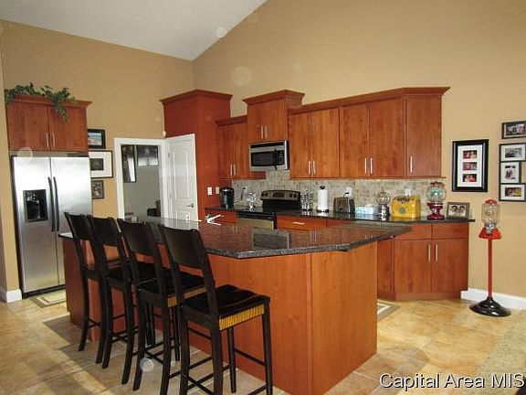 Quality built 3 bdrm with many extras! Beautiful cherry wood kitchen cabinets, granite counters, under cabinet lighting, large breakfast bar. Master bedroom has two walk in closets! Walk in shower in mstr bath. Tall vaulted ceilings in living room and kitchen. The family room off the kitchen could also be a formal dining room. Nice screened in porch. In ground sprinkler, alarm, and central vac completes this awesome attached home!