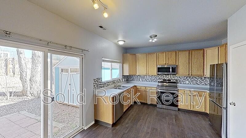 A single family home with 3 bedrooms, 2.5 bathrooms, an attached 2-car garage and 1,628 s.f. Bright and sunny, with open layout; 9"+ ceilings and LVP floors throughout main floor; a kitchen with SS appliances, plenty of cabinets and a pantry; a spacious family room with gas fireplace and build-ins. A sliding door leads to a big, fully fenced yard with mature trees and a shed for additional storage space. Three bedrooms, including a Primary bedroom, are upstairs, along with two full bathrooms and a laundry closet with Washer and Dryer included. Central A/C for hot summer! Tenants can use Ring Security cameras under their account. Located in a quiet residential area with trails and open space nearby. Close to C. Springs Airport and Peterson AFB. Visit solidrockre. All applicants should complete a Pet, No Pet, or Animal Profile. - 1 Dog is only allowed, no size limit; no other pets (restrictions, additional terms/Pet deposit/Pet rent apply) - No Smoking. No Marijuana. No Drug use. - 12-Month Minimum Lease Term - Tenant pays Electric, Gas, Water/Wastewater, and Garbage - Central A/C - Yes Credit Screening: 600+ Preferred Minimum 575-599 = Double Security Deposit Required; Conditions apply Income / Employment: Gross combined monthly source of income of all applicants must be 2 times the monthly rent (3 times the monthly rent requires one month security deposit and 2 times the monthly rent requires a double security deposit). Verification of income is required and no applications will be accepted or considered without this information. Landlord Reference(s): - Positive reference from current and/or previous Landlord(s) - No Evictions in the past 7 years Background Screening: - No violent crimes in the last 5 years - All other crimes evaluated on a case-by-case basis in the last 5 years - No criminal charges relating to homicide or methamphetamines from any point in time. TENANT DISCLOSURE: 1. The prospective tenant has the right to provide to the Landlord a portable tenant screening report, as defined in section 38-12-902 (2.5), Colorado Revised Statutes; AND 2. If the prospective tenant provides the Landlord with a portable tenant screening report, the Landlord is prohibited from: - Charging the prospective tenant a rental application fee; or - Charging the prospective tenant a fee for the Landlord to access or use the portable tenant screening report. ** DISCLAIMER: We do our best to market our properties online as accurately as possible. However, it is possible some of the images will have inaccuracies or will appear slightly different in person than in our virtual tours. For this reason, we strongly recommend all applicants view properties in person before signing a lease so there is full awareness on the actual condition of the property. **