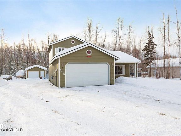 Bring your boats, side by sides, and RV. This charming 3B, 2B home boasts extensive paved parking and overflow space for your toys. Completely fenced back yard with 4 gated access points. Huge 16 by 20 deck to entertain and soak up the sun! Raised beds and mature raspberry bushes throughout the property. The vaulted ceiling in the living room & kitchen has an open conceptEntertain guest in the large kitchen, featuring a tiled backsplash, and spacious island. Fresh paint in the downstairs bedrooms, living, and kitchen area. For the adventurer this home has access to nearby trails and Reed Lake. Government Peak and Skeetawk are just around the corner. This location is 10 minutes from Wasilla, close to great schools, and outdoor activities. Huge 16 x 20 storage shed with loading ramp is negotiable.