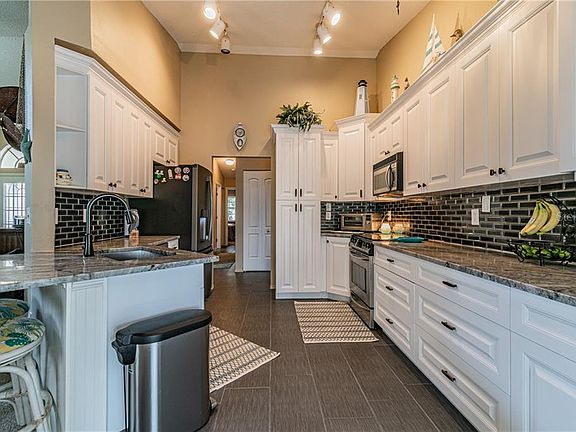 IT'S ALL ABOUT THE LIFESTYLE! Living here allows you to enjoy FANTASTIC AMENITIES including a BEAUTIFUL COUNTRY CLUB with an AWARD-WINNING RESTAURANT featuring Special Holiday Functions, Wonderful Sunday Brunch, Dances, and other Social Activities. Play GOLF, TENNIS, and SWIM 12 MONTHS out of the year! This STYLISH UPDATED FLORIDA HOME features soaring ceilings and high transom windows. The KITCHEN was COMPLETELY UPDATED IN 2019 with CROWN MOLDINGS, gorgeous WOOD-LOOK TILE FLOORS, GRANITE COUNTERS with Beautiful Mirrored Tile Backsplash, CABINETS FEATURING SOFT-CLOSE along with a Built-in Wine Glass Rack, a 16-Gauge FARM SINK, BOSCH DISHWASHER, HIGH-END Range with CONVECTION OVEN, MICROWAVE and REFRIGERATOR. Stunning Ceiling Fans adorn the great room and dining areas. In fact, EVERY ROOM in this home has had MODERN CEILING FANS INSTALLED IN 2019. The GARAGE has been freshly painted, has a Terrific Functional WORK BENCH and sports EPOXY SHIELD FLOORS (2019). UPDATED ELECTRICAL PANEL with WHOLE HOUSE SURGE PROTECTOR, pre-wired for a swimming pool and equipped with an UPGRADED SMART RAIN BIRD SYSTEM. New RAIN GUTTERS INSTALLED (2019). The Master Bath has a Garden Tub as well as a Roman Walk-in Shower. The LANAI is ENCLOSED and therefore could be used for additional indoor space if needed. An OUTDOOR 12X21 STONE PATIO lets you to enjoy the Florida Sunshine in style. FABULOUS CENTRAL LOCATION within minutes of Shopping, Dining, Airport and Beaches.
