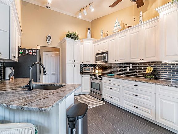 - Interior Features: Ceiling Fans(s), Eating Space In Kitchen, High Ceiling(s), Master Bedroom Downstairs, Split Bedroom, Walk-In Closet(s), Crown Molding, Solid Wood Cabinets, Living Room/Dining Room Combo, Solid Surface Counters, Window Treatments, Cathedral Ceiling(s)