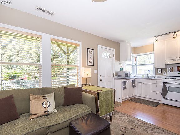 Picture perfect Roseway cottage. 2 bed / 1 bath, great condo alternative, turn key condition, designer finishes, newer flooring & windows. Remodeled bath & updated electrical. Open kitchen with gas cooking. Additional 158 sqft studio in detached garage. Possibly convert garage to ADU? Inviting outdoor space with covered porch, private patio, lush yard and garden surrounded by picturesque picket fence, perfect for the urban gardener. [Home Energy Score = 8. HES Report at https://api.greenbuildingregistry.com/report/pdf/R300648-20180419.pdf]