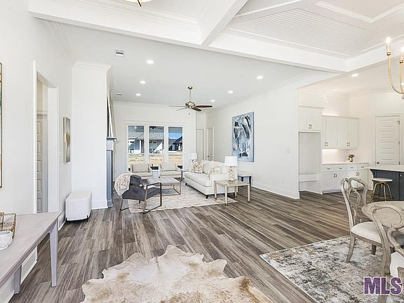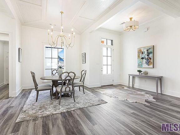Cheval Point is located three miles from LSU's campus. It is a serene & peaceful development off the River Road offering cool breezes and levee sunsets. This particular home is a modification of Hometown Homebuilder's Corsten Plan and offers four bedrooms and three full baths and has seamless wood flooring throughout. Spacious living is afforded here with the kitchen and dining areas positioned to provide privacy making this layout ideal for gatherings and family time. Note the dining room ceiling with a four-way vaulted wainscoting feature highlighting the space. The kitchen has more than enough cabinetry with contrasting colors, gold fixtures, a gas cooktop, and a deep stainless sink. These features make it a functional and stylish space for cooking and meal preparation; one you'll be proud of for years to come. The master bedroom has a tray ceiling and connects to a luxurious master bath. The master bath includes dual vanities, a custom shower, a soaking tub, a water closet, and a custom closet with thoughtful storage solutions. There are three additional bedrooms. Two bedrooms share a bath, while the fourth has a separate bathroom. This setup is versatile and convenient for families or guests. The large enclosed back patio provides a comfortable space to enjoy views of the spacious backyard. The yard is fully sodded and has outdoor lighting, and is partially fenced for privacy. The neighborhood is adjacent to the Mississippi River Levee, offering residents opportunities for outdoor activities like biking and jogging along the river path. This friendly neighborhood offers opportunities to socialize and share peaceful sunsets and cool breezes, imagine children's parties; bike parades, and kite contests in the expansive acreage surrounding the property. Call today to see this well-crafted and thoughtfully designed space in a lovely location, combining both comfort and elegance with a focus on outdoor living and community activities.