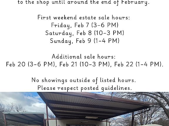 Estate property with restricted showing access until sometime in March. Some parts of the home may be seen during the estate sale hours: Friday, Feb 20 (3–6 PM), Saturday, Feb 21 (10–3 PM), Sunday, Feb 22 (1–4 PM). No showings outside of listed hours. No access to the shop until future dates. Please contact your realtor for more information.