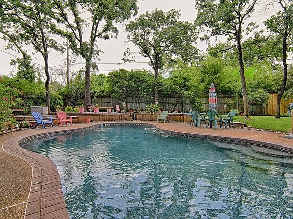 A gorgeous backyard oasis. Beautifully maintained open concept 3 bedroom 2 bath home located on a cul-de-sac with a stunning in ground Gunite pool. Master has a sitting area that could be used as an office with windows that look out to the beautiful front yard. Ensuite master bath has separate shower and tub. Living room features a vaulted ceiling and brick fireplace. Wood decking all around with additional seating built in the deck. This home would be excellent for someone who enjoys being outside and for outdoor entertaining.