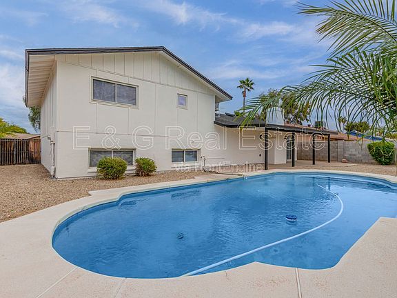 Prepare to be dazzled by this stunningly remodeled Tempe residence, boasting a highly sought-after floorplan with 6 bedrooms, 3.5 bathrooms, and a complete array of upgrades throughout! As you step inside the main level, you'll be greeted by a breathtaking transformation. The gorgeous all-white kitchen stands as the centerpiece, featuring brand new shaker cabinets, quartz countertops, a massive island, and stainless steel appliances, seamlessly opening up into the spacious living and dining areas. A convenient powder bathroom on the main floor ensures comfort for guests. New vinyl plank flooring and fresh paint throughout create a seamless and inviting ambiance. Downstairs, three spacious guest rooms share a beautifully renovated bathroom with a stunning new vanity. There is also a small bonus room ideal to use as an office space or additional storage. Upstairs, discover the remaining two guest bedrooms, an additional guest bathroom, and the luxurious primary suite. In the backyard you'll discover a refreshing oasis with sparkling pool, perfect for summer days and outdoor gatherings. Pool and landscaping service is included making the backyard enjoyable year round! Situated just minutes from ASU, Tempe Marketplace, and convenient transportation options including the light rail, bus, and orbit stops, this home offers both luxury and convenience in one remarkable package.