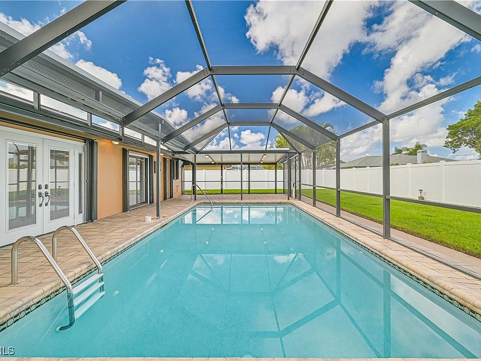 Fenced yardExpansive paver lanaiMetal roofBrand-new kitchenOversized heated poolHurricane-rated accordion shuttersFully updated bathrooms