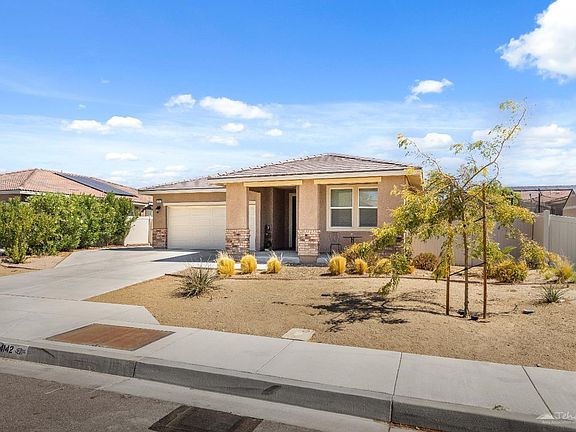 Immaculately Maintained and Ready for You! This single story 3-bedroom, 2 bath home, was constructed in 2019. The wide hallways feature an entry area that feels luxurious and opens into the great room. The tall ceilings create an airy and open atmosphere, The layout flows seamlessly into spacious living areas, creating a warm and inviting feel. The exquisite kitchen serves as the heart of the home. Featuring modern appliances, marble countertops, ample storage in the pantry and more of cabinet storage space. It's perfect for culinary enthusiasts, busy families and entertaining guests. Every corner of this meticulously maintained property feels inviting, with large windows that allow natural light in to highlight details and finishes throughout the home. There are many builder upgrades; the interior walls are insulated keeping noise down and enhancing the energy efficiency. The combination of leased solar, great insulation, and energy efficient appliances keeps the utility bills super low in the heat of summer AND in the cold winter months. A cozy alcove office offers a quiet retreat for productivity, making it ideal for remote work or study. The split wing layout offers a quiet retreat for the spacious master bedroom with a HUGE walk-in closet with a large ensuite bathroom that offers a spa-like retreat. Indoor laundry area is conveniently located at the center of the home. The attached garage is spacious; it is drywall finished and the floors are epoxy-coated. Great curb appeal and drought tolerant xeriscape is easy to maintain and friendly to the environment. The back yard is beautifully landscaped with a place to enjoy your quiet morning or host evening get togethers under the covered patio, it completes this a perfect outdoor retreat. Don't miss your chance to make this extraordinary property your home.Schedule a viewing today and experience the blend of style, and sustainability this home offers!