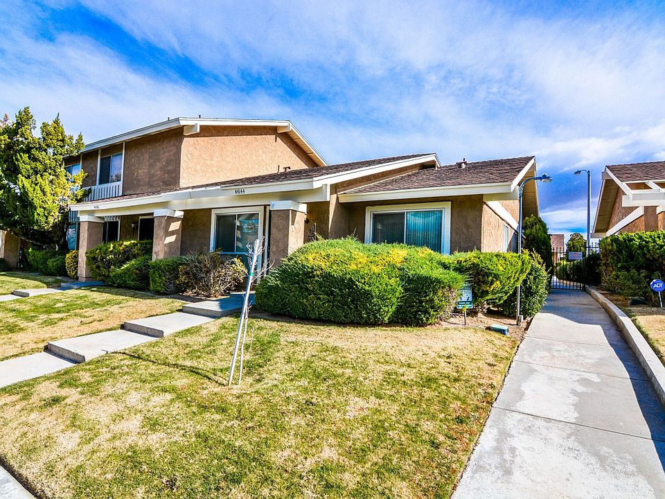 Excellent location in the College Terrace Park gated community near Antelope Valley College! Great 3 bed 1.75 bath single story in Lancaster. Enter in to find a bright and spacious living room. The remodeled kitchen features custom wood cabinets, tile floors, and plenty of space for cooking while entertaining or chatting with family in the big room eat-in kitchen. The enclosed patio is just steps away, so you can do your barbecuing, or enjoy dining alfresco. The three large bedrooms all feature ceiling fans and window blinds; the bedrooms all offer top of the line mirrored closet doors. And the master bedroom suite has two separate closets. Attached two car garage, with direct access to the home through the enclosed patio. Sparkling community pool, BBQ area and lounge area that is perfect for summer. Community park and places to walk right within this lovely community. Easy access to the freeway. Must See!
