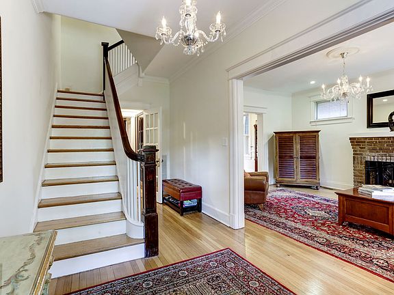 The townhouse is one of the most essential components of the urban residential landscape in the United States. Constructed in virtually every era and rendered in numerous styles and vernacular iterations, this model is the quintessence of city living. This semi-detached townhouse offers the space and light of the single family house, while providing more efficient energy consumption and reduced maintenance expenses.When Crestwood was developed in the first quarter of the 20th century, many handsome rows of fine townhouses emerged as a way of meeting the housing needs and aspirations of a burgeoning middle class. This residence has been thoughtfully renovated and carefully updated, maintaining many of the original period details.A welcoming entrance is created by a generous front porch that can be enjoyed in every season. The first floor offers a large entry hall, opening onto a spacious living room with a wood-burning fireplace and original quarter-sawn white oak floors. The dining room can seat up to 20 comfortably, and the kitchen was opened up and renovated, using fine cabinetry and high-end appliances. A sunroom off of the dining room creates an opportunity for a more causal living space, immediately adjacent to a deck overlooking the rear garden.The second floor provides a large master bedroom including two walk-in closets with a renovated en suite bathroom which offers a sybaritic soaking tub. There is an additional bedroom which could be used as a second master suite, also with renovated en suite bathroom. This floor offers the added convenience of a third bedroom and hall bathroom. A home office was created on the third floor that includes access to an intimate roof deck, perfect for observing the July 4th fireworks in addition to the Washington Monument.The lower level offers and additional 1000 square feet of finished living space containing the laundry room, storage, kitchen, bedroom, bathroom, and can be used as an au pair suite. This level walks directly out to the rear garden, which is also accessible from the first floor.