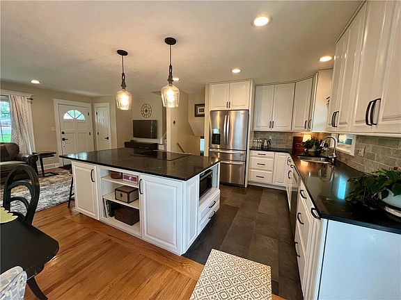 This is the most comfortable and updated house you'll see! Entering the home you will be blow away by the open space and warm touches of this area. This level has the living room, kitchen and dining in one open space. The living room and dining have hardwood floors. The beautiful white kitchen has abundance of cabinets and a center island with room for stools. All kitchen appliances remain. Up one level are 3 bedrooms with hardwood floors and a full bath with tiled floors . Down one level is a back door entry, a 3/4 bath, a large comfy family room and a office /craft/toy room. This area some time in the past was used as a mother in-law apt. The lower level has a finished flex space with cabinets and countertop, perfect for a game room or pool table. Adjacent is the mechanical room with storage area plus the washer and dryer. Out the back door from the eating area you will find a relaxing backyard and a 2 1/2 car garage. This home is just waiting for your personal touch!