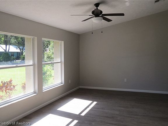 This 3 bedroom, 2 bath, 1 car garage is located in popular golfing community of Sun N Lakes and just minutes from US 27, Florida Advent Hospital as well as Sun N Lakes championship golf courses and more! The home sits on a 1/4 acre lot with a fenced back yard shaded by a beautiful Oak tree plus no rear or side neighbors. The interior has all new vinyl plank flooring in a great natural color and all fresh paint inside + out. The home has a unique floor plan with a center constructed kitchen surrounded by the living room then leading around the kitchen to a dining and family room area with cathedral ceilings. The kitchen has wood cabinets and granite countertops. The floor plan is split and the master bedroom is above average size (12x18) with a 6x7 walk-in closet. In addition to the new flooring and fresh paint, there are new light fixtures, faucets, switches, a new hot water heater, doors, trim, toilets, sinks, stove, and new shower inserts in the guest bath. Owner's are Licensed Real Estate Agents.