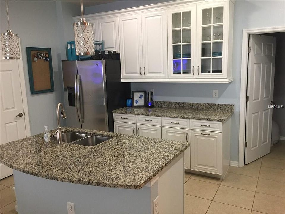 THIS VILLA IS A TWO BEDROOM TWO BATH TWO CAR GARAGE AND COULD BE A 3 BEDROOM. KITCHEN IS OPEN TO THE DINING & FAMILY ROOM, WHICH OPENS ONTO A COVERED (20'X14') LANAI. KITCHEN FEATURES DESIGNER LEVEL 42" CABINETS WITH 3" CROWN MOULDING, STAGGERED OVER THE MICROWAVE, TWO GLASS CABINET DOORS WITH MATCHING INTERIORS, WASTE BASKET DRAWER, STAINLESS APPLIANCES, CENTER ISLAND, GRANITE COUNTERTOP WITH UNDERMOUNT STAINLESS SINK, & UPGRADED KITCHEN FAUCET. THE DEN IS OFF THE ENTRY HALL. MASTER SUITE FEATURES A LARGE WALK-IN CLOSET AND A MASTER BATH WITH GRANITE COUNTERTOP, DOUBLE SINKS, BRUSHED NICKEL SHOWER ENCLOSURE, & UPGRADED WALL TILE. BEDROOM TWO IS ACCESSED FROM THE ENTRY FOYER AND HAS ITS OWN BATH WITH GRANITE COUNTERTOP. THERE IS UPGRADED CARPET & TILE THROUGHOUT THE HOME. OTHER EXTRAS INCLUDE TWO PENDANT PRE-WIRES OVER THE ISLAND, EXTRA FAN PREWIRES, & A WINDOW BLIND PACKAGE. COMMUNITY HAS A COMMUNITY POOL & CABANA. HOA INCLUDES LAWN MAINTENANCE, EXTERIOR REPAINTING, ROOF MAINTENANCE, & COMMUNITY POOL