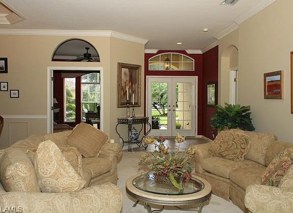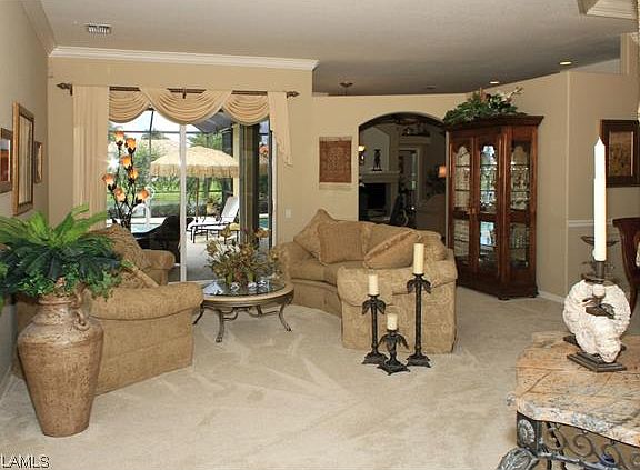 Longshore lake is a gated community in North Naples with 565 homes, seven miles of shoreline, formal and casual dining and a very active tennis program. This meticulously maintained home is located on a quite cul de sac street and features 4 bedrooms (2 master guest suites) plus den 3 baths, over 2800 square feet of living space and a 3 car garage upgrades include new carpet throughout the main living area, wood floors, crown molding, NEW STAINLESS STEEL APPLIANCES, BACKSPLASH AND NEW LIGHTING in Kitchen. and custom storage closets in the garage. . Enjoy long lake views and sunsets from the oversized lanai.