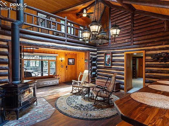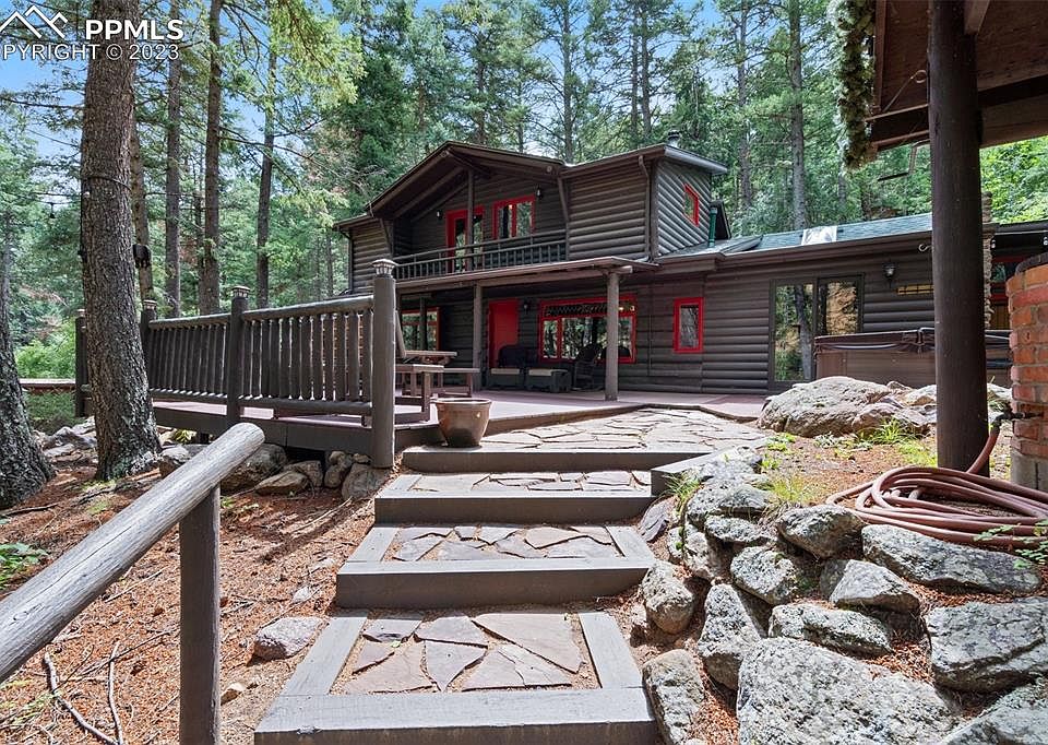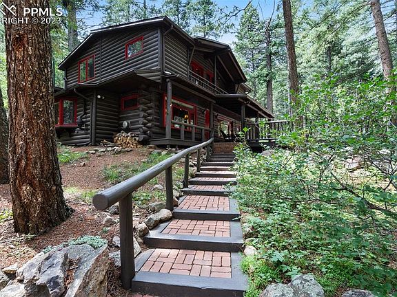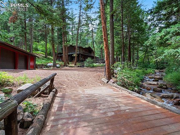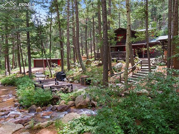 Welcome home to your own private creekside cabin located above Helen Hunt Falls and just 20 minutes from downtown Colorado Springs! Sit on your front deck and take it all in! North Cheyenne Creek runs through the property and provides a peaceful backdrop to this beautiful home. Just step out your front door to enjoy the forest and the many hiking trails. As you enter the cabin you will be immediately impressed by the vaulted ceilings, sunny skylights and the natural flow of the living spaces. The kitchen has stainless steel appliances, granite and walnut butcher block counter tops and a custom coffee bar. The dining room has a charming old world brick floor and is 13x18! The main floor master bedroom has 5 closets providing ample storage and it’s own private full bath and a laundry room. The upstair bedroom is large enough to accommodate a king size bed, has two closets and it’s own convenient full bathroom. The living room has a custom built dry bar with access to the deck and sea salt hot tub! All renovations and custom built-ins throughout the home have been tastefully done in keeping with the original rustic charm while providing all the modern amenities. There is a newly renovated two car garage with an attached workshop and a separate adjacent lot included in the listing. This is a rare opportunity to own a piece of Colorado history!