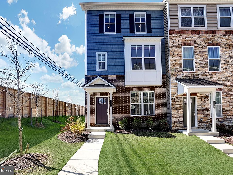 Welcome HOME to this exquisite 2022 built end-of-group townhome situated in the esteemed Long Gate Overlook community. It stands as a paragon of modern luxury living, distinguished by its elegant brick water table, sophisticated shake siding, and a welcoming portico entrance.  Upon entry, one is greeted by a foyer adorned with Luxury Vinyl Plank flooring, bathed in natural light, offering a flexible space to the right that can serve as either an office or an entry-level bedroom, complete with double door access, window treatments, and an attached half bath. The entrance hall further leads to a utility closet housing a tankless water heater, a spacious two-car garage, and a meticulously designed command center featuring quartz countertops and custom cabinetry.  The main living level, accessible via a gracefully ascending staircase, unveils a harmonious blend of neutral paint and flooring choices that create a serene backdrop for the sun-filled great room, appointed with premium window treatments and recessed LED lighting. The culinary space is a testament to luxury, equipped with stainless steel appliances, quartz countertops, a luxurious subway tile backsplash, and 42” custom Snow White cabinetry accented with contemporary black hardware. An end-unit exclusive additional window invites abundant sunlight, enhancing the kitchen's ambiance, which is also prepped for future pendant lighting installations and includes a spacious pantry. The dining area, adorned with elegant window treatments and a custom chandelier, offers private access to a low-maintenance TRX balcony, while a convenient half bath and architectural bump-outs elevate the main level’s appeal.  The upper level is dedicated to tranquility and relaxation, featuring an opulent owner’s suite with recessed lighting, a walk-in closet, and an en-suite bathroom showcasing double vanities with quartz countertops, sleek hardware, designer tiled flooring, an enlarged frameless shower, a smart toilet seat/bidet, along with a secluded water closet and linen storage. Two additional bedrooms, a tastefully upgraded full bathroom with a tub shower, and a strategically located laundry room complete this level.  Added modern conveniences include an Electric Vehicle Charger and a rear-loading two-car garage with interior access, ensuring practicality and sophistication.  This home's location is unrivaled, positioned near major thoroughfares such as Routes 100, 29, RTE 103, and I-95, and within seconds to a plethora of shopping, dining, and recreational venues, including Target, Safeway, Barnes & Noble, Kohl’s, the YMCA, Centennial Park, Meadowbrook Park, the Mall in Columbia, Wegmans, and Long Gate Shopping Center. Community amenities include tennis and basketball courts, outdoor lighting, and sidewalks. Zoned to blue ribbon Howard County Schools : Centennial High School, Ellicott Mills Middle School & Veterans Elementary School.