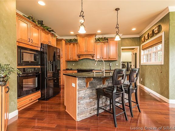 Custom home ... first time on the market ... located 1/2 mile from Hidden Creek Golf Club! Upon entry the two story foyer leads to an adjacent formal dining room and wood/wrought iron staircase. You’ll spend lots of time in the kitchen which offer finished in granite, smooth top range/oven plus a wall oven, breakfast/dining area and is open to the great room ... where everyone will choose to gather. Second level features oversized master suite bedroom, spacious bathroom and wardrobe closet with custom built-ins and three other bedrooms and a hall bathroom. Finished walkout lower level features family room, wet bar, another full bath and plenty of storage space in the garden garage. Outdoor living spaces are phenomenal, and include expansive deck with retractable awning, lower level patio and fire pit. Other bells & whistles include vacuflow system, two furnaces & AC units and security system! All room sizes and Sq Ft are approximate. Mailing address is Sellersburg but is in the Jeffersonville City Limits. Buyer's or Buyer's agent should verify home features, amenities, public schools and square footage specified on the MLS data sheet. One owner is the listing broker. Preferred Lender Program Available.