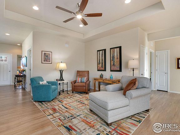 Discover the charm of single-story living in Loveland, Colorado with Mountain Views! This inviting home boasts an open floor plan, creating a seamless flow from room to room. Abundant natural light fills every corner, enhancing the warm and welcoming atmosphere throughout. Recent upgrades include new light fixtures that add a touch of modern elegance to the space.The heart of the home is the beautiful kitchen featuring gorgeous granite countertops and a matching backsplash. This tasteful addition not only elevates the aesthetic but also provides a functional and stylish space for culinary endeavors.The expansive Trex deck is a perfect spot to enjoy the Colorado sunshine and entertain guests. The deck opens to a large greenspace, offering a private oasis and a connection to nature right in your backyard. As you relax on the deck, be captivated by views of the majestic mountains. You truly feel surrounded by Colorado's beauty. This gem in Loveland is not just a home; it's an experience of comfort, style, and the beauty of the surrounding landscape. Embrace the convenience of single-level living with modern upgrades, an open layout, and outdoor spaces that invite you to savor the scenic wonders of Colorado living.
