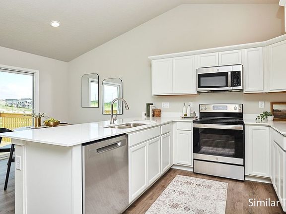 Located in the Southeast Polk School District, this Chariton plan by Hubbell Homes in Grover Woods blends comfort and convenience on Des Moines's northeast side. With no HOA dues, a City of Des Moines property tax abatement, and a one-year builder warranty, this home offers peace of mind. This ranch-style layout provides 1,358 sq. ft. of main-level living, featuring three bedrooms and two bathrooms. The inviting great room flows into the dining area and modern kitchen, equipped with quartz countertops, a pantry, and GE stainless steel appliances: range, microwave, and dishwasher. The primary suite, set at the back for privacy, includes dual sinks, a walk-in shower, and a spacious walk-in closet. Two additional bedrooms and a full bathroom at the front of the home offer versatile living options. An unfinished basement adds potential for future expansion and includes 15-year waterproofing for long-term durability. Additional highlights include a two-car attached garage and LVP flooring for style and easy maintenance. The Chariton at Grover Woods features a well-thought-out layout, quality finishes, and a serene setting. Preferred lenders offer $1,750 in closing costs (subject to preapproval, exclusions, and changes). All information from the seller and public record