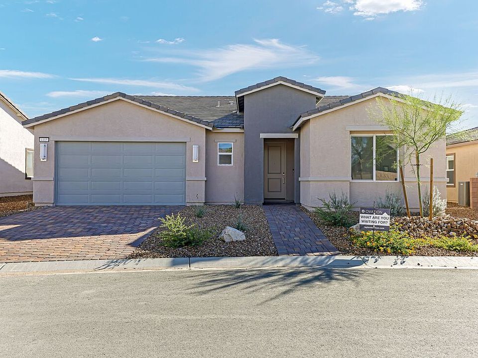 Welcome to the Primrose at 4415 E Murlo Road in Ovation at Mountain Falls! This thoughtfully designed home offers a single-story layout featuring 3 bedrooms, 2.5 bathrooms, and a 2-bay garage across 1,784 square feet. The open-concept kitchen, dining, and gathering areas flow seamlessly into a spacious covered patio-perfect for indoor-outdoor living. The split-bedroom layout provides extra privacy for guests, with the primary suite tucked away from the secondary bedrooms and bath. Located just an hour from Las Vegas, Ovation at Mountain Falls blends natural beauty with everyday ease-offering scenic mountain views, golf course living, and resort-style amenities. Enjoy exclusive access to the Ovation Clubhouse, all set within a community named Best Active Adult Community by the Las Vegas Review-Journal. Additional Highlights Include: Powder bath and sliding glass door.