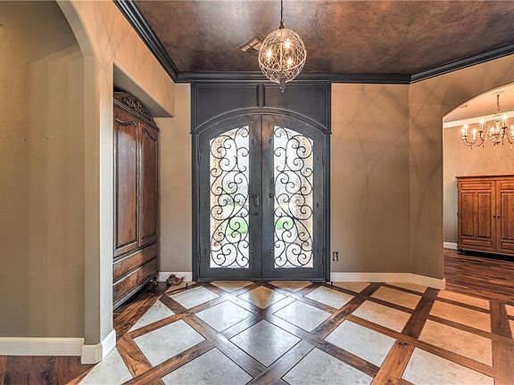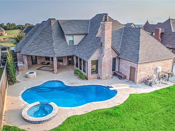 Fabulous 5 bedroom, 4 full bath home in the highly sought after Fountain View addition of West Norman boasting 3 living (or 2 living/2 dining), outdoor kitchen & plantation shutters throughout! Family room & 2 bedrooms (including master) down stairs. Bonus room & 3 bedrooms upstairs. Entry opens to sitting area overlooking incredible back yard. Sitting area flows seamlessly in to professional chef's kitchen boasting breakfast bar, stainless appliances, island & amazing pantry with prep space. Formal dining to the left. Family room to the right featuring lodge style wood beams & fabulous fireplace. Master features jetted tub, double vanity, heated floor & over-sized walk in closet. Upstairs bonus room with 2 ceiling fans - perfect for creating 2 distinct conversation/media areas. Two of the upstairs bedrooms share attached bath with private vanity in each. Backyard oasis with gorgeous covered patio & outdoor kitchen overlooking pool & greenbelt to the back of the property.