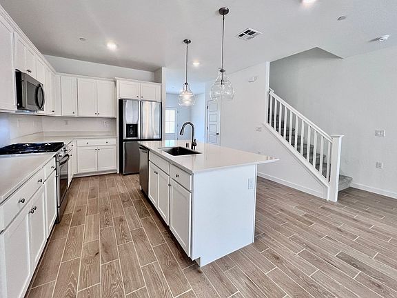 New Stainless steel appliances including a refrigerator, built-in microwave, gas range, oven, dishwasher, and disposal. Additional walk-in closet under stairway. Half bathroom located downstairs. 1 bedroom located downstairs featuring a full bathroom.