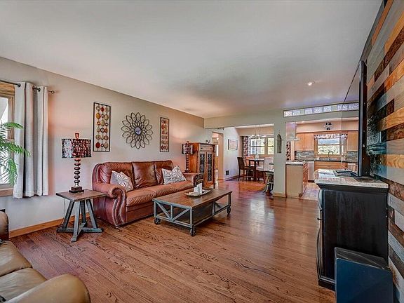 Beautiful move-in ready ranch in a beautiful Brookfield neighborhood! Let the front patio invite you into gorgeous hardwood flooring, large windows for natural light and modern touches like the farmhouse style wall. Enjoy the open kitchen and dining area either from the breakfast bar or the dining room. Either way, this kitchen is a delight complete with newer cabinets, a gas cooktop, & double ovens! Spacious Primary Bedroom addition provides desirable split -bedroom layout, and large windows make for peaceful mornings waking to the sight of the lush & very large backyard. Other bedrooms are generous with large closets. You'll love the convenient main floor laundry. Oversized garage is a bonus and new C.H.I. overhead door installed by Geis! Roof, furnace, CA, water softener all <8 yrs old!