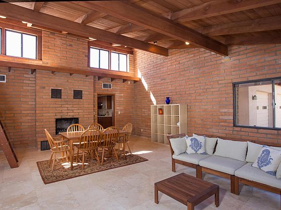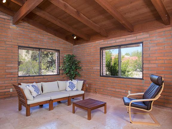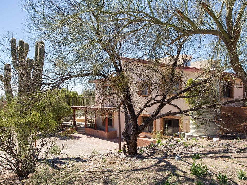 Unique, charming and ahead of its time, pioneer passive solar design home, built in 1980. Burnt adobe construction with stucco exterior and exposed adobe interior. Great room with fireplace, beautiful plank and beam ceilings, clerestory windows and travertine flooring that continues into kitchen and breakfast room. New bamboo flooring in all BRs. Remodeled kitchen with quartz counters, stainless steel appliances. Master BR and Kitchen open to south facing Arizona room with sliding doors that open to 2 different deck areas. Bonus double loft area with ladder access from the great room and 2nd BR, with wonderful Mt and city views. Walk out lower level has private entrance and remodeled studio space with bamboo floors, kitchenette, large 3rd bedroom, remodeled 3/4 bath. Large custom in-ground spa in backyard. Rainwater collection cistern, solar panels on detached 2 car garage roof, large separate laundry room with lots of storage space. Very private lot with easy access to midtown and central foothills.