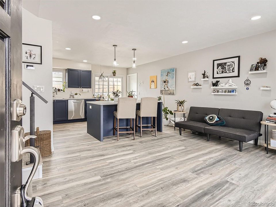 Step into great value at this updated and well-maintained multi-level in Friendly Hills! A lot of love, care, and updates have gone into this home, and it shows. A full kitchen remodel in 2022 created a breezy, open floor plan punctuated by a vast island (with outlets on all sides) and accented by sharp new navy cabinetry and stainless steel appliances. New LVP flooring; new baseboards and doors throughout the home; barnwood paneling & new vanity in the downstairs laundry/bathroom; lower bedroom/office space remodeled in 2020 - keen design choices blend to make this home at once cozy/comfortable AND chic/modern. Two large bedrooms upstairs round out this awesome gem. This is one his is one of the few homes in the neighborhood with natural gas service - a new gas furnace was installed in 2022! Large backyard and graded, with a French drain added and new back patio poured in 2022. Come take a look and fall in love!
