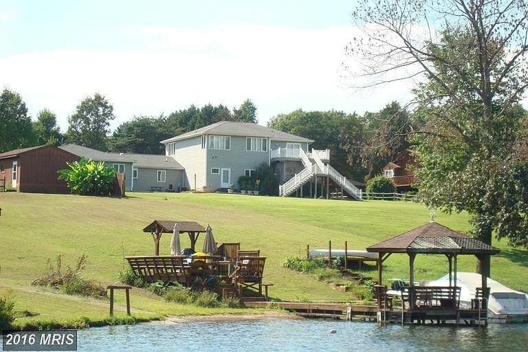 $25K REDUCTION! Something for everyone & can house the masses!Main level master suites w/great views of the lake,sep.dining rm,kitchen w/granite,cherry cabinets,27X27 slate patio area.Upper level: 2 BRS,another lrg kitchen w/breakfast bar & table space,living rm & 22X20 composite deck w/vinyl railing.36X32 garage w/lots of storage,wkshop &apt. w/full bath & sep.W/D hookup.Boahouse,deep water.
