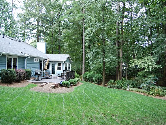 This is a meticulously renovated home, located on a quiet cul-de-sac. One of the largest homes in the neighborhood with one of the largest lots. Huge family room with vaulted ceilings, a lodge like fireplace and a wet bar. Party deck overlooks lushly landscaped, privacy fenced backyard and a large outbuilding with electricity. Newer roof, new paint inside and out, Two car garage, shaded front porch with relaxing porch swing, Outdoor lighting and in ground sprinklers. Located less than five minutes to the shops and restaurants of The Forum. Excellent School Systems