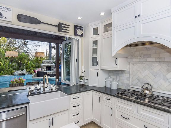 Magnificent in every single detail. Exquisite remodel with Rancho Santa Fe quality in every room. Premier folding window doors open up the family room and living room to the outside entertainment area featuring a saltwater pool, spa, separate outside fireplace conversation area, elongated fire-pit, and walk behind bar with bar-b-que and refrigerator. No Mello Roos tax and no homeowner fees. Flat cul-de-sac location with no neighbors across the street. Elegant dramatic kitchen with massive cabinets, built-in refrigerator, high volume overhead stove fan. Other features include: 1. 3 secondary bedrooms surround private media room 2. Custom arched interior doors 3. Superb flooring 4. Wrought iron staircase 5. Built-in bar with wine fridge 6. Outside kitchen with grill, bar-b-que, and beer tap 6. Custom master bedroom closet5 Bedrooms + Loft, 4.5 Baths, and 3,273 Square Feet