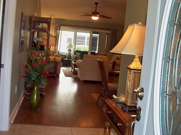 This beautiful 2 bed room, 2 bath home is located in the much desired Vantage Pointe subdivision. The home was built in 2006 and has been well maintained - freshly painted inside and outside, air conditioner only 2 years old, and new tankless "instant hot" water heater. The kitchen has newer stainless steel appliances, plenty of cupboard space, a bar height counter, a large pantry plus a smaller dish pantry. The open concept dining room has a chair rail. French doors lead to a 10'x14' den that can be used as an extra guest room, craft room or office. Den has sliding class doors to the lanai. The extra large master suite has a large walk-in closet. The large master bath has a long and raised duel sink vanity, walk-in shower, and large linen closet. The guest bedroom has an 8.5' closet and the guest bath has a raised vanity. The newly added 24'x10' lanai has a built in air conditioner/heater and acrylic windows with screens. Other features of this home include an inside laundry room with cupboards and a bi-fold door to close if off, a 16'x10' outside patio, glass front storm door with removal screen, and ceiling fans in bedrooms, living room, den, & lanai. This is a 18 + community with low HOA fees ($75 per month) and an active homeowners association.