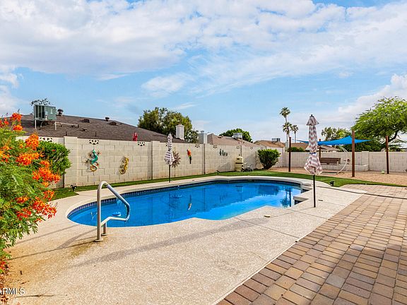 Remodeled 3-bedroom home with POOL, new a/c (2022), updated wiring and pool equipment, RV gate, and solar. Inside, you'll discover tile flooring, recessed lighting, soothing color palette, arched doorways, & a cozy brick fireplace. You'll love cooking in the spotless open kitchen including built-in appliances, beautiful wood cabinetry, stylish mosaic backsplash, & plenty of counter space to cover all your cooking needs. The wonderful backyard features a large covered patio & a sparkling pool that invites you to take a refreshing dip on warm sunny days! There is also a children's playhouse perect for the kiddos or use it as a shed. This home has been well cared for. What are you waiting for? Create new memories in this fantastic home. SOLAR PAYMENTS are $77.83 FIXED. Not increasing. System installed 2015