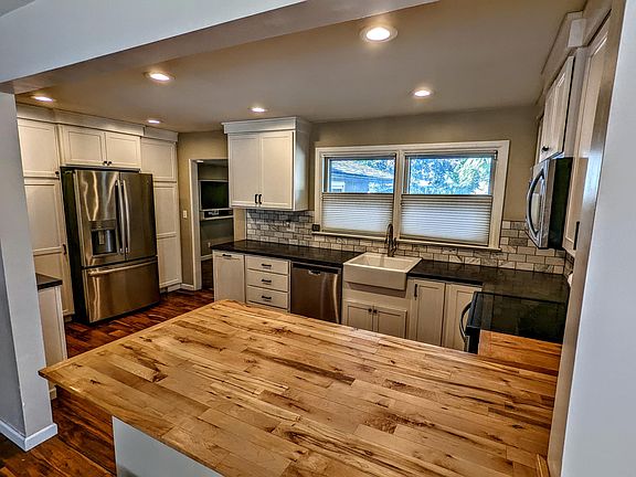 This mid century home is located in a private, secluded Bench neighborhood, blocks from the greenbelt, and an easy bike ride to downtown Boise. This three bedroom/two bath house offers an office area and t.v. room. There is beautiful acacia flooring throughout the house, a wood fireplace surrounded by walnut bookshelves and built-in closets throughout. The large living room includes a large window and with the original exterior double doors that face the beautiful back yard. The kitchen and main bathroom are newly remodeled with custom cabinets, concrete countertops, and marble backsplash. The private master bedroom includes a bathroom with a large shower. The main level is1668 sqft with an additional 300 sqft unfinished basement for laundry and storage. The backyard has a large private patio, garden area, and the yard is surrounded by mature trees. A carport is available for parking. There is a storage shed with electrical and an extra shed for bike/ski storage. Rental includes stainless steel refrigerator, dishwasher, oven, and microwave, and a washer/dryer. 12 month contract. 3 off street parking spots. Renter is responsible for electric and water. No smoking allowed. $2500 deposit. If renter owns pet(s), an additional $25 fee a month required.