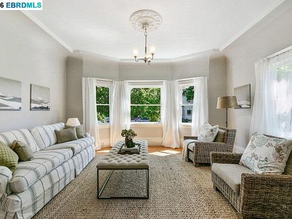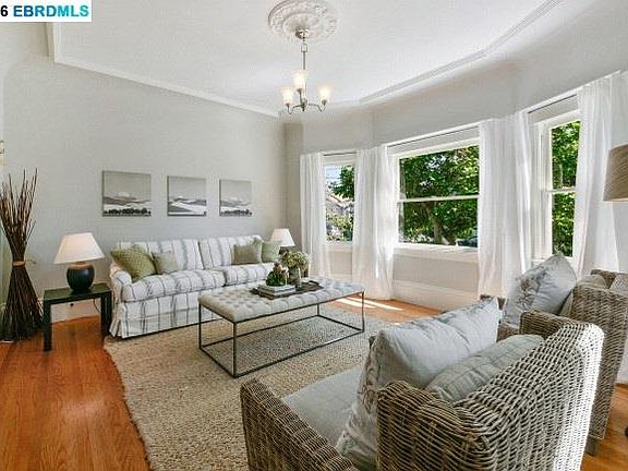 Stately Temescal home , wonderful front porch , classic details. Formal Dining room with box beam, coved ceilings, and hardwood floors. Lovely plus room with French doors onto back garden. Remodeled eat in kitchen & lower bath. 3 spacious bedrooms on one level. Minutes to restaurants, BART