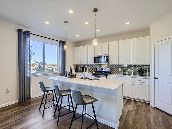 The address is 4415 Trader St, Timnath, CO 80547. As you walk through the long foyer, the Marion bestows relaxation and entertainment on all sides. In a linear fashion, the great room, dining area, and kitchen are accompanied by a kitchen island with easy access to the patio. Beside the stairway you will notice a charming private bedroom, full bath, and a courteous study that are undisturbed producing a serene environment. Upstairs to your left are two bedrooms to share a full bath, and a roomy loft. On the right, the luxurious primary suite boasts a large window for natural light and the walkthrough private bathroom leads to a walk-in-closet. Front yard landscaping, Century Homes Connect Automation and air conditioning included. This home balances functionality and style, providing a canvas for personalized living. Timnath Lakes is a new master planned community featuring an expansive lake with walking paths and community amenities. Located just off Harmony Road with quick access to I-25, Poudre School District, shopping, dining and recreation including the Poudre River Trail. The tenants will be responsible for all utilities, deposit due at time lease signed, no smoking allowed.